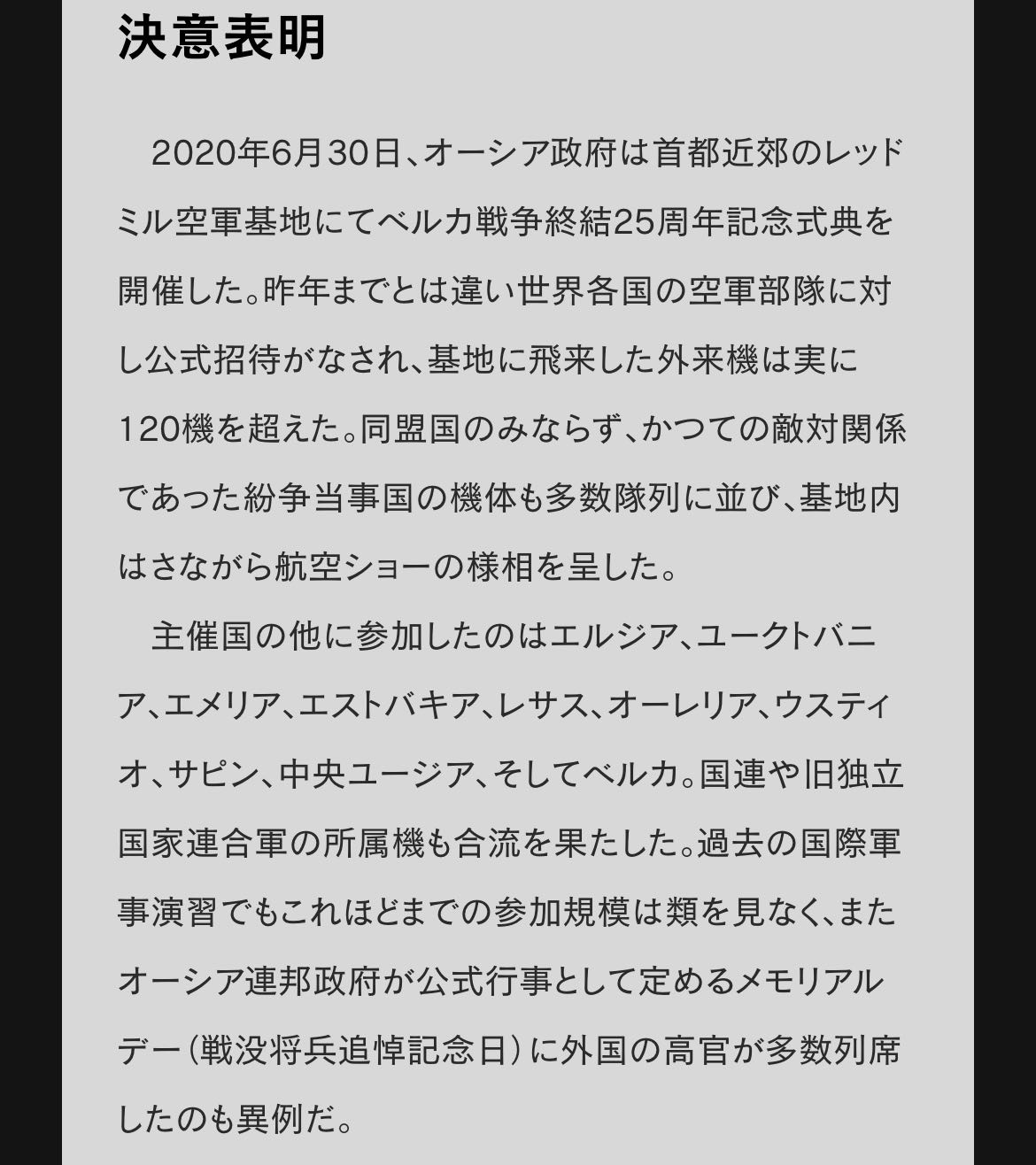 | … | 7626/01/07(水)12:18:40No.1390237335+>>しかも侵攻直前にオーシア主催の平和式典に参加してるぜ |