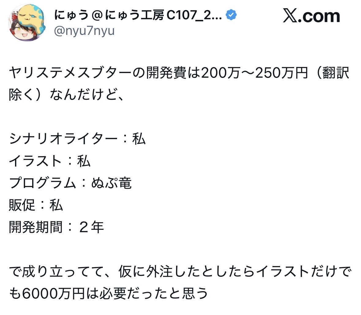 | … | 3826/01/07(水)15:43:57No.1390281825+でも外注しても元取れたどころの話じゃないんでしょう? |