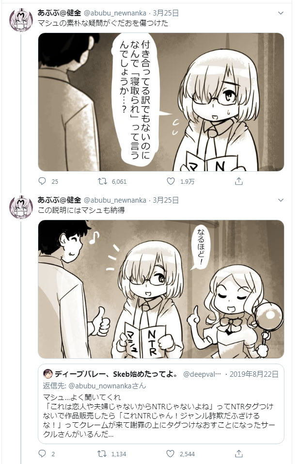 | … | 6726/01/07(水)16:52:23No.1390295037+>寝取られ自体がデリケートな作品にはなるし多少神経質なタグ付けするのは当たり前じゃね?と思うよ俺は |