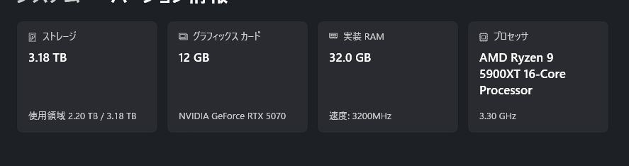 | … | 2726/01/08(木)12:18:59No.1390519060+>2080Tiだけどまだ戦える |