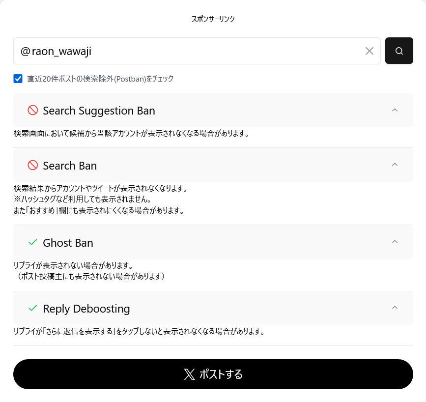 | … | 48126/01/08(木)18:31:35No.1390609390+青バッジ買ってるせいで垢BANには至らないけどシャドウバンの上センシティブアカウント扱いだから知らん人に見てもらえる可能性はほぼないって言うね… |