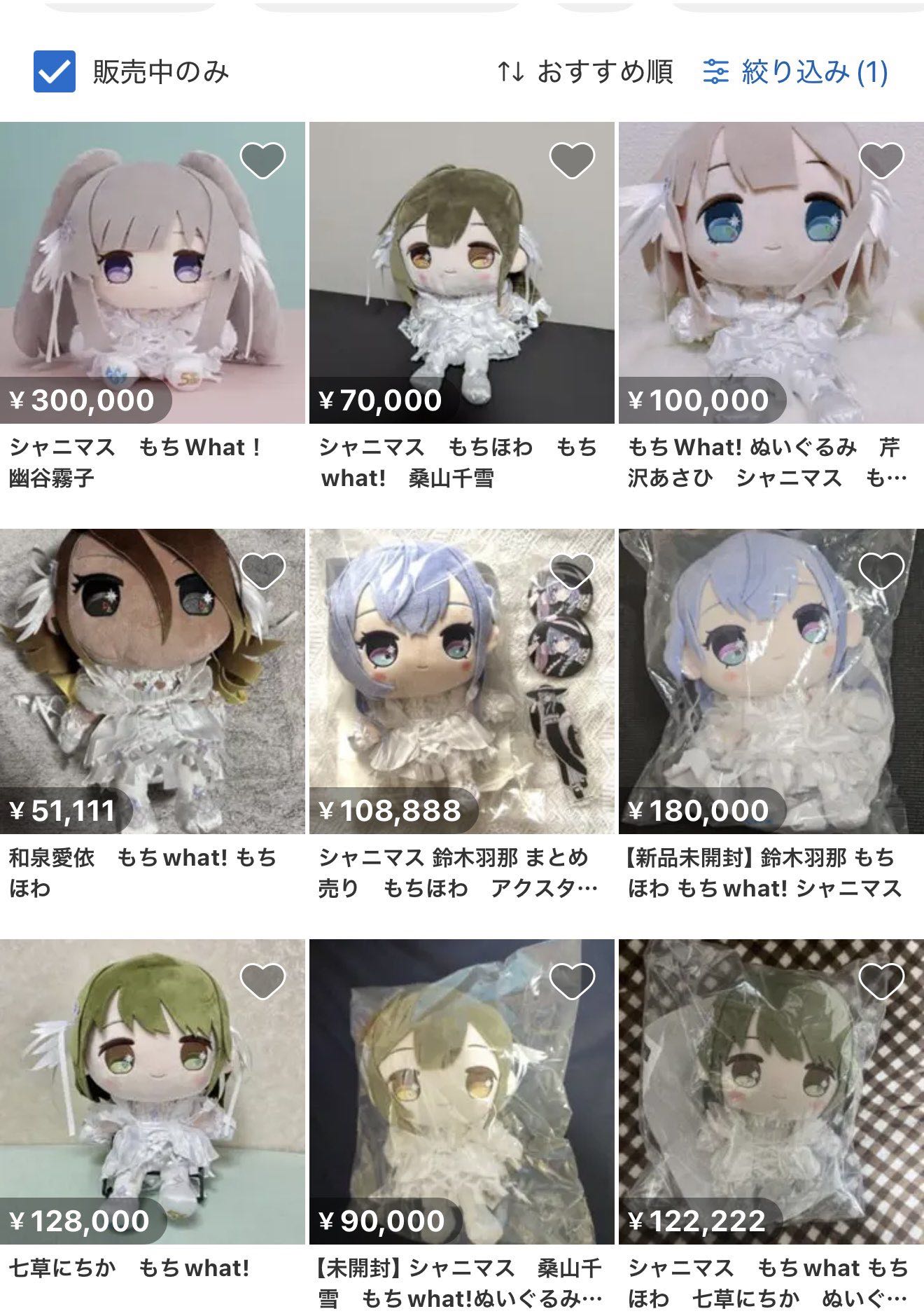 | … | 16626/01/08(木)19:10:29No.1390621574+>LME後ににちかのもちほわだけ売ったけどかなり値段下げないと売れなかったし手間考えたら駿河屋に投げたほうがよかったかもしれぬ… |
