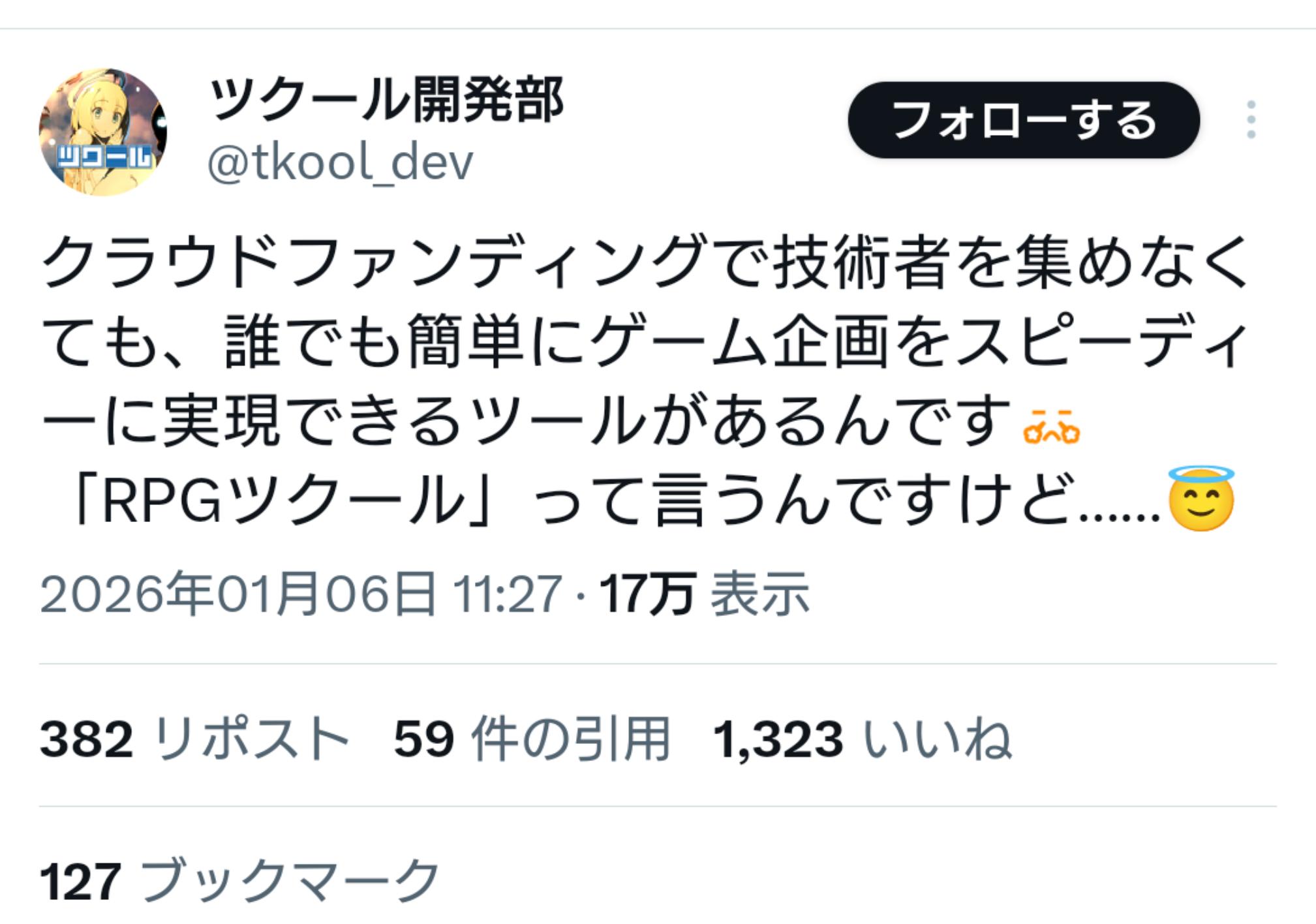 | … | 1626/01/08(木)23:02:37No.1390703026+薬草祭だと色んなツール見るけどお外(国内)だとツクールを使わない≒unityくらいのイメージ |