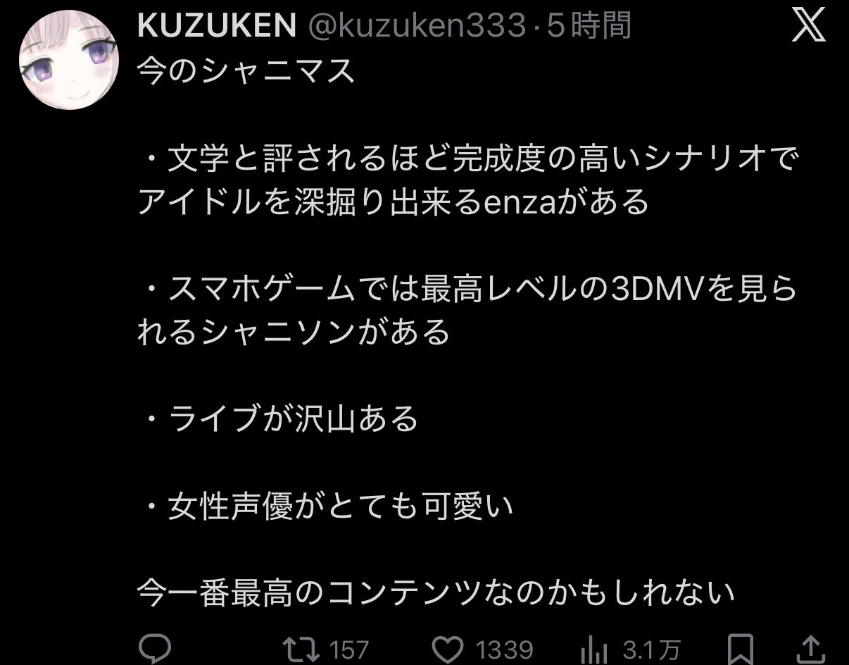 正直怖いくらいシャニマス充実しててシャニのオタクとしても戸惑ってるしこれって興行として成り立ってるの?みたいになるけどそれは消費者は考える必要ないことだよね…