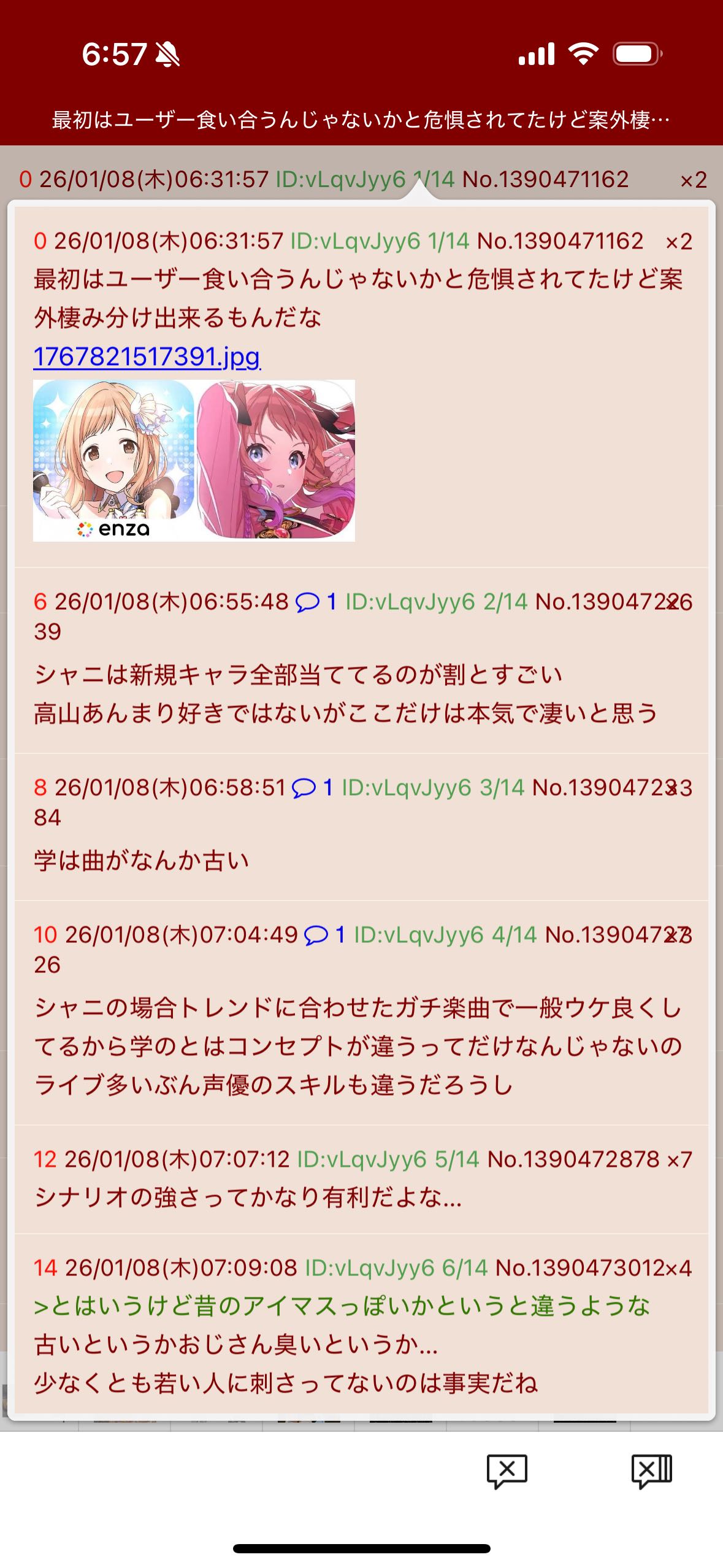 | … | 4026/01/09(金)07:20:38No.1390761926+>こいつずっとシャニ上げ他下げスレ立ててんな |
