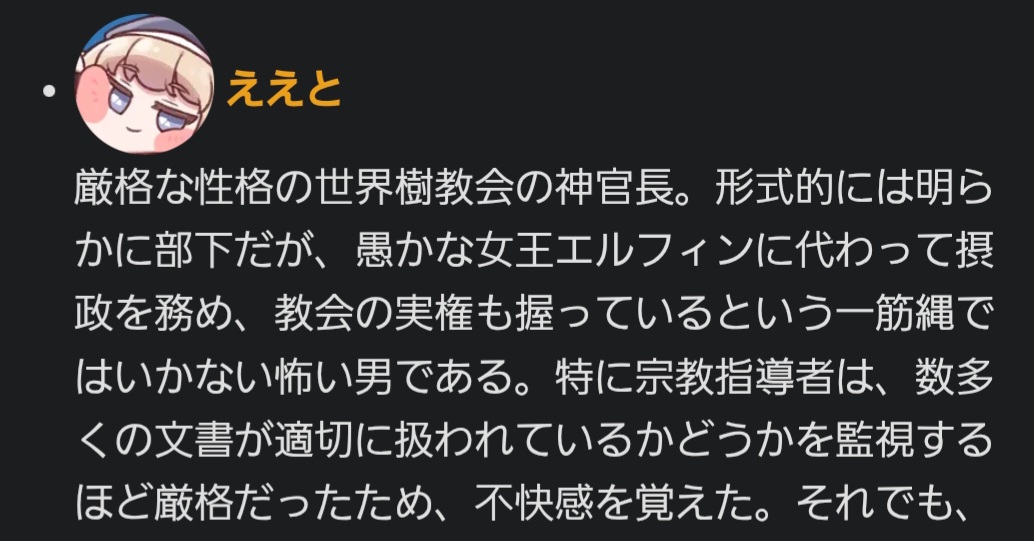 | … | 60126/01/09(金)17:51:53 ID:wikAGgcwNo.1390874664そうだねx3>エルフの中でもなんかスパイの子はすごいいい子なの謎にゃ…… |