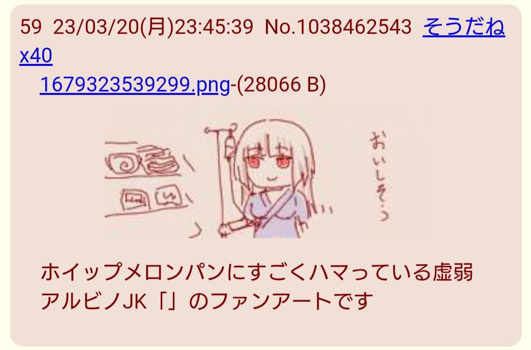 | … | 1126/01/09(金)22:00:18No.1390965056+世界は広いんだから虚弱アルビノふたなりJK「」くらいいるさ |