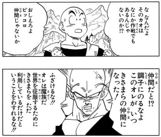 | … | 50926/01/10(土)19:56:53No.1391231998+>しょうがないから手を貸すが…みたいなスタンスだし本当に仲間になれたのはブウ編で蘇生された後だと思う |