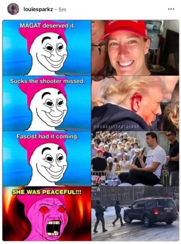 | … | 2726/01/11(日)02:06:33No.1391355777そうだねx2ー>事件そのものよりも副大統領が「射殺された女は左翼活動家だ!極左が悪い!今起きているデモは極左グループの仕業だ!バイトで雇われた極左が暴れてるだけだ!!」って喚いてることの方に驚く |