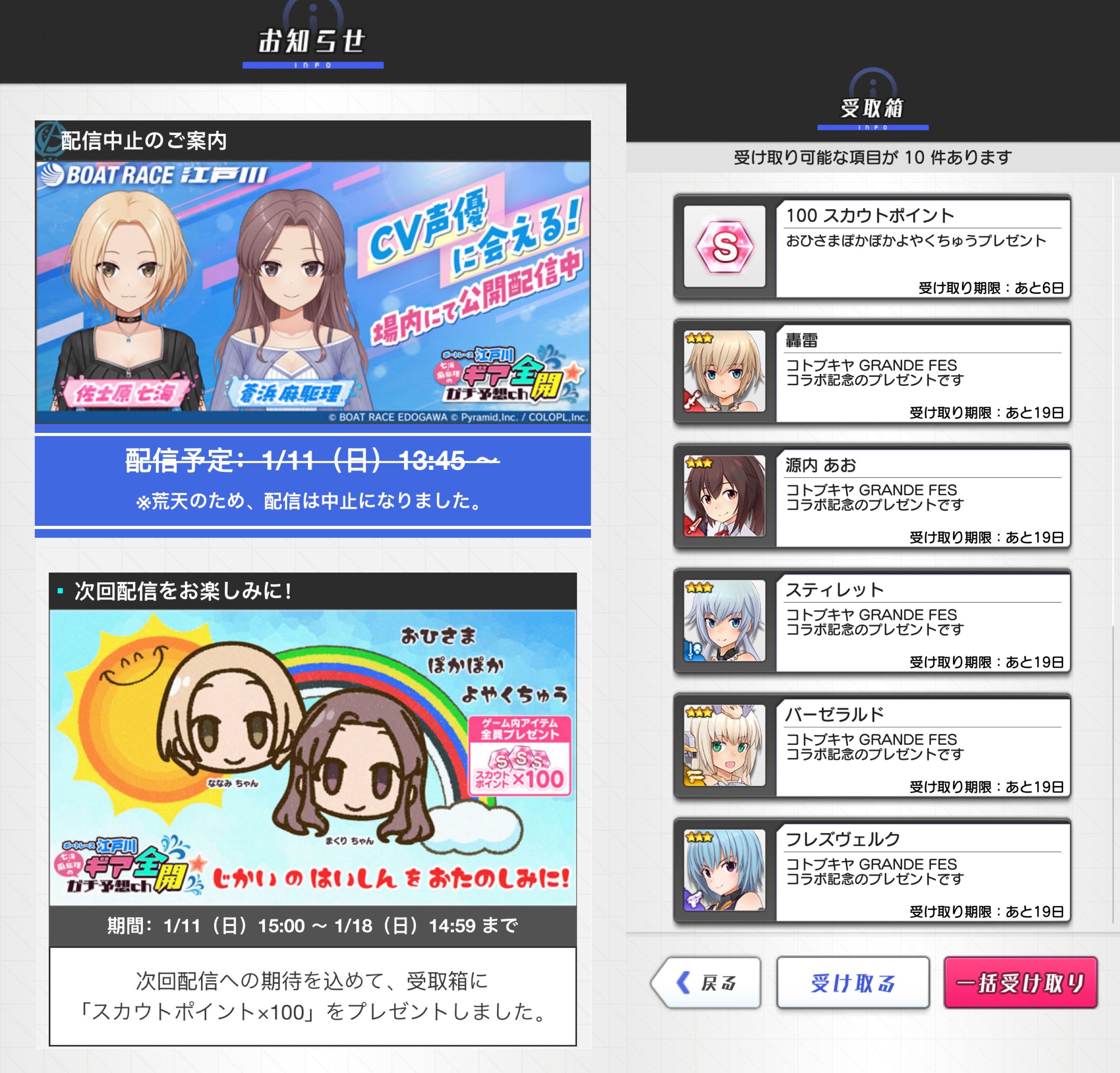 | … | 2626/01/11(日)15:13:41No.1391490248+あれログボ1日取り忘れてたっす…前回の一覧どなたか撮ってないっす? |