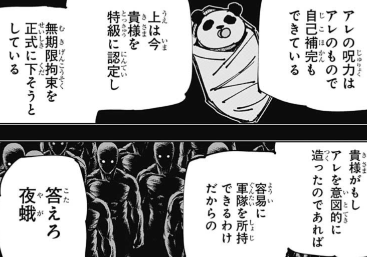| … | 74226/01/11(日)18:41:03No.1391552700そうだねx8新宿で総力戦みたいな状況なのに五条家も加茂家もその他大勢の術師も全然前線出てきてねえんだから |