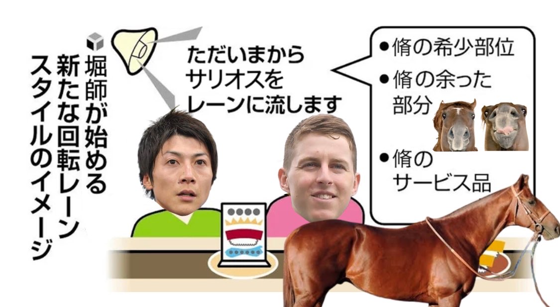 | … | 8426/01/11(日)18:12:31 ID:ytiN0gZ2No.1391543327+今帰ってきましたけどリュージ落馬して搬送って… |