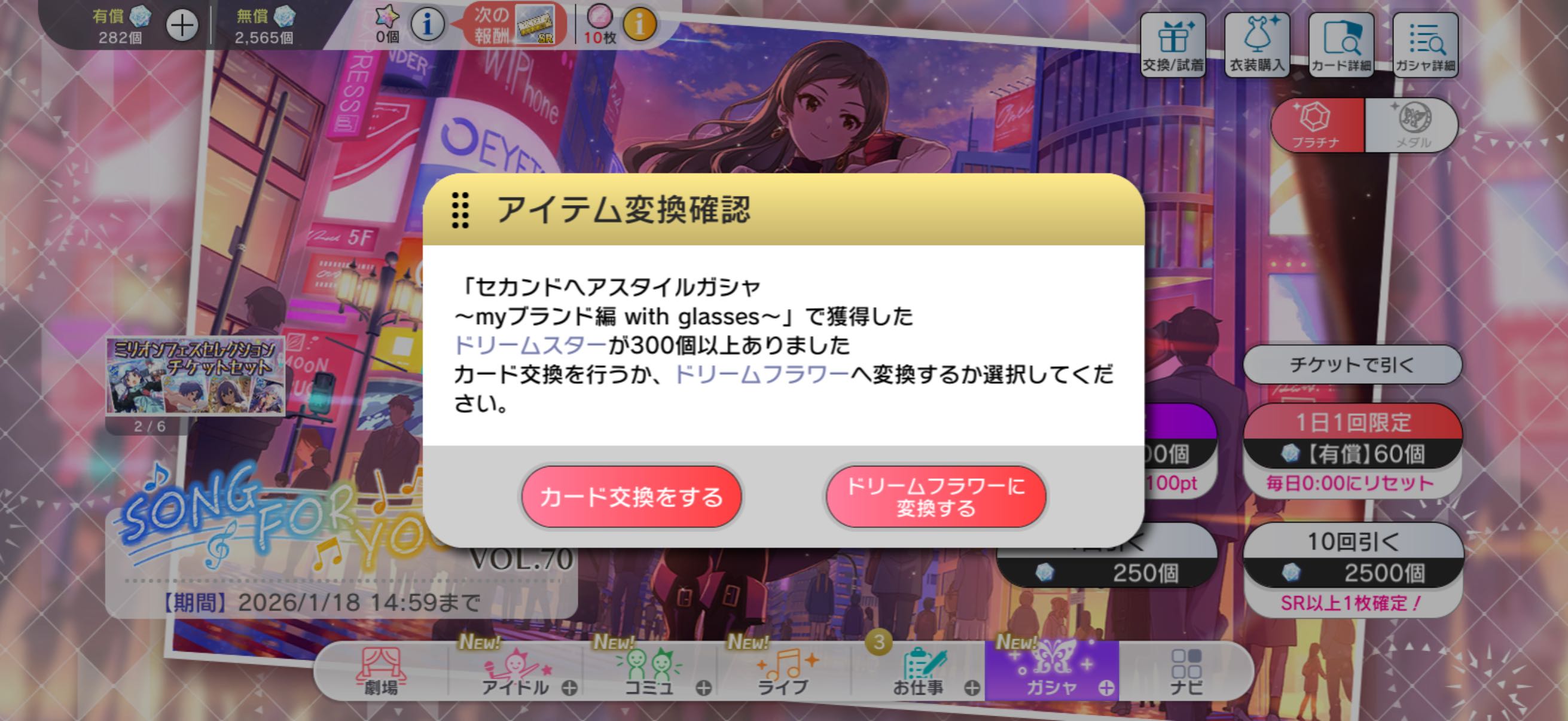 | … | 3726/01/11(日)19:19:32No.1391565594+ガシャ期間ギリギリまで回して天井叩いたけど切り替わったせいで交換できませんでした! |