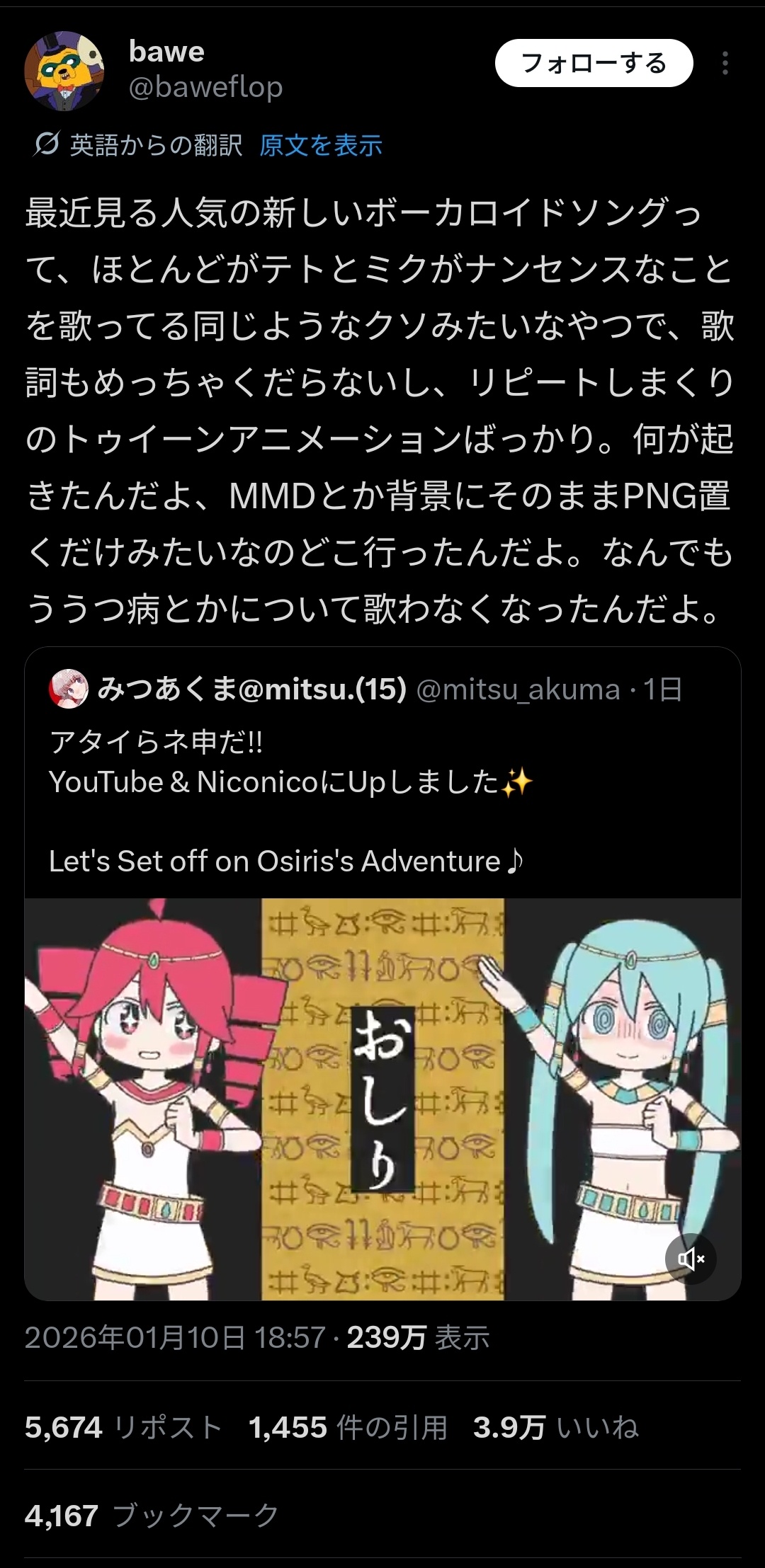 外国人、最近のボカロは初音ミクと重音テトしかいないとブチギレこのスレは古いので、もうすぐ消えます。