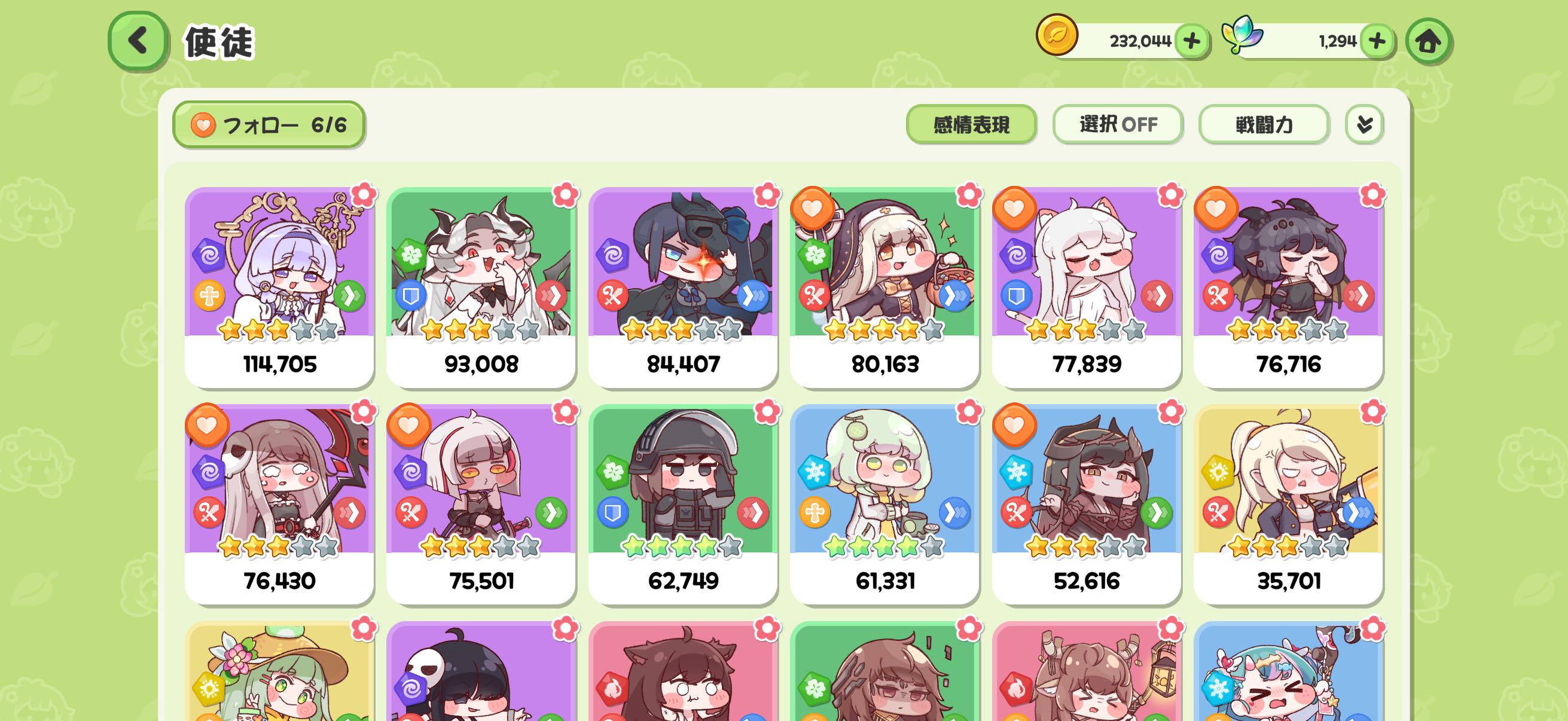 | … | 43526/01/11(日)20:31:02 ID:/qcPu61sNo.1391595214+序盤なんて前衛とヒーラーが1人以上いれば6属性1人ずつでも低レアでもどうにでもなるにゃん |