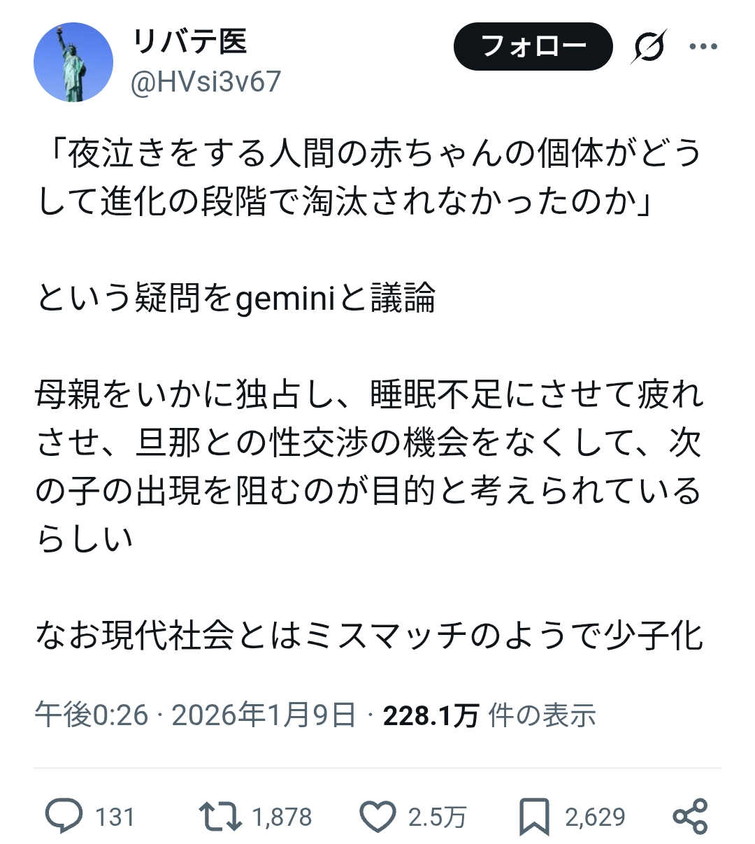 | … | 2026/01/11(日)20:01:46No.1391581707+AI育児カプセルで解決しそう |