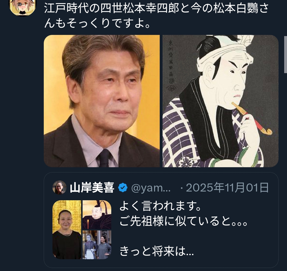 | … | 4126/01/11(日)21:38:10No.1391624086そうだねx3慶喜の方が近い代の先祖なのにそこ通り越して初代に激似なの面白い |