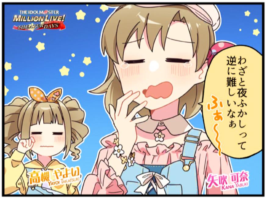 | … | 9926/01/12(月)01:13:06No.1391693665+今日のPurple Skyのコミュでは志保が響と並んで一番小さい組だった |