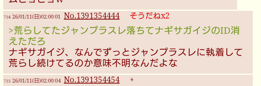 | … | 626/01/12(月)00:03:59 ID:feePRmI2No.1391676786+なー |