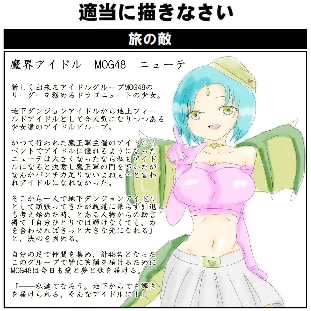 | … | 3726/01/12(月)00:20:02No.1391681382+>>MOG48にDHK48なんて今の魔界はアイドルバトルが熾烈なんだな… |