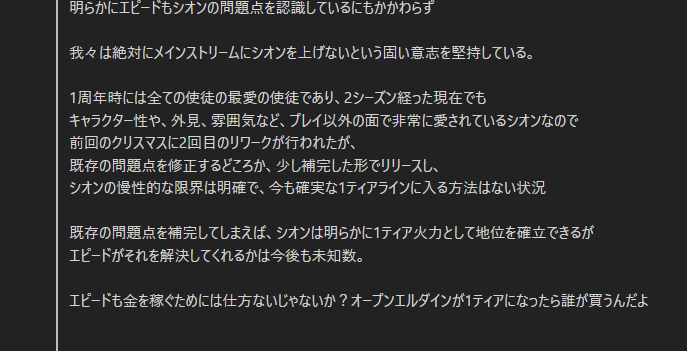 | … | 37726/01/12(月)02:46:46No.1391707799+>>向こうのスレでもストーリーネタバレにならん程度の未実装キャラの話なんかはわりと普通にされてるから |