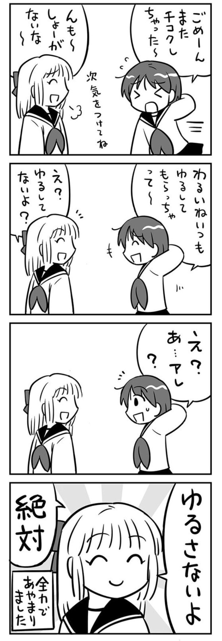 | … | 1426/01/12(月)08:54:47No.1391729495そうだねx1言葉にして何度も謝るより以後遅刻を全くしない方が反省してるって説得力はあるよな… |