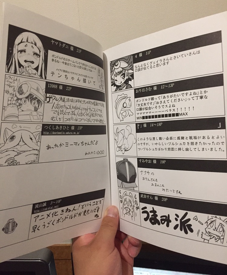 | … | 4926/01/12(月)14:00:14No.1391798696そうだねx19>学園祭のアビス本出した人が元アシでお願いして描いて貰っただけ |
