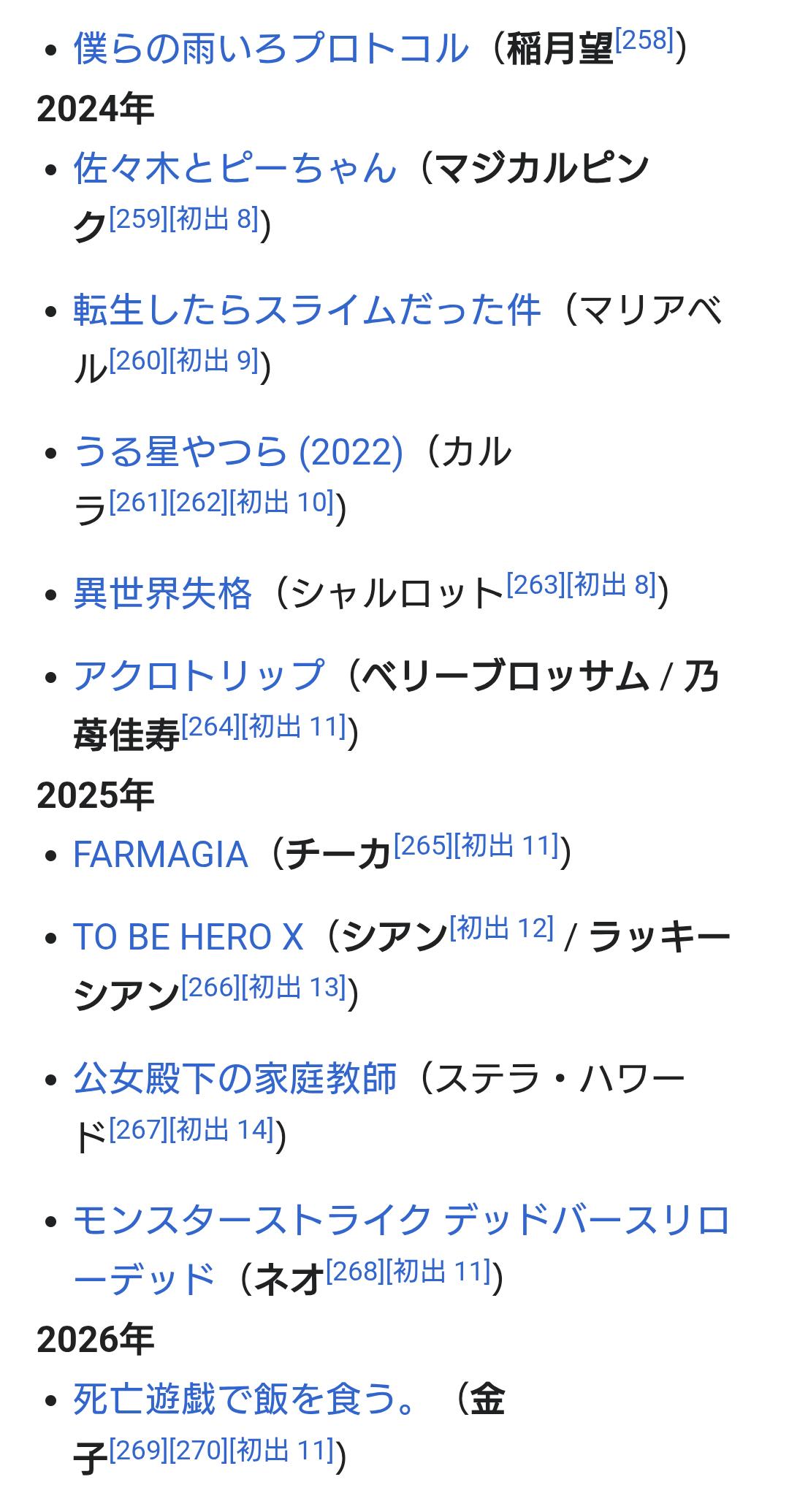 | … | 14526/01/13(火)02:40:32No.1392024057+全盛期に比べたらだけどアニメの出演数減ってるから結婚からの引退準備してるのかな… |