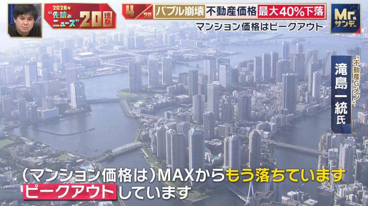 | … | 7126/01/13(火)02:53:04No.1392024872そうだねx3>まあ不動産バブルは崩壊する!と数年前からずっと言われ続けてる割に今も投資はされてるんでまだ続くかもしれない |