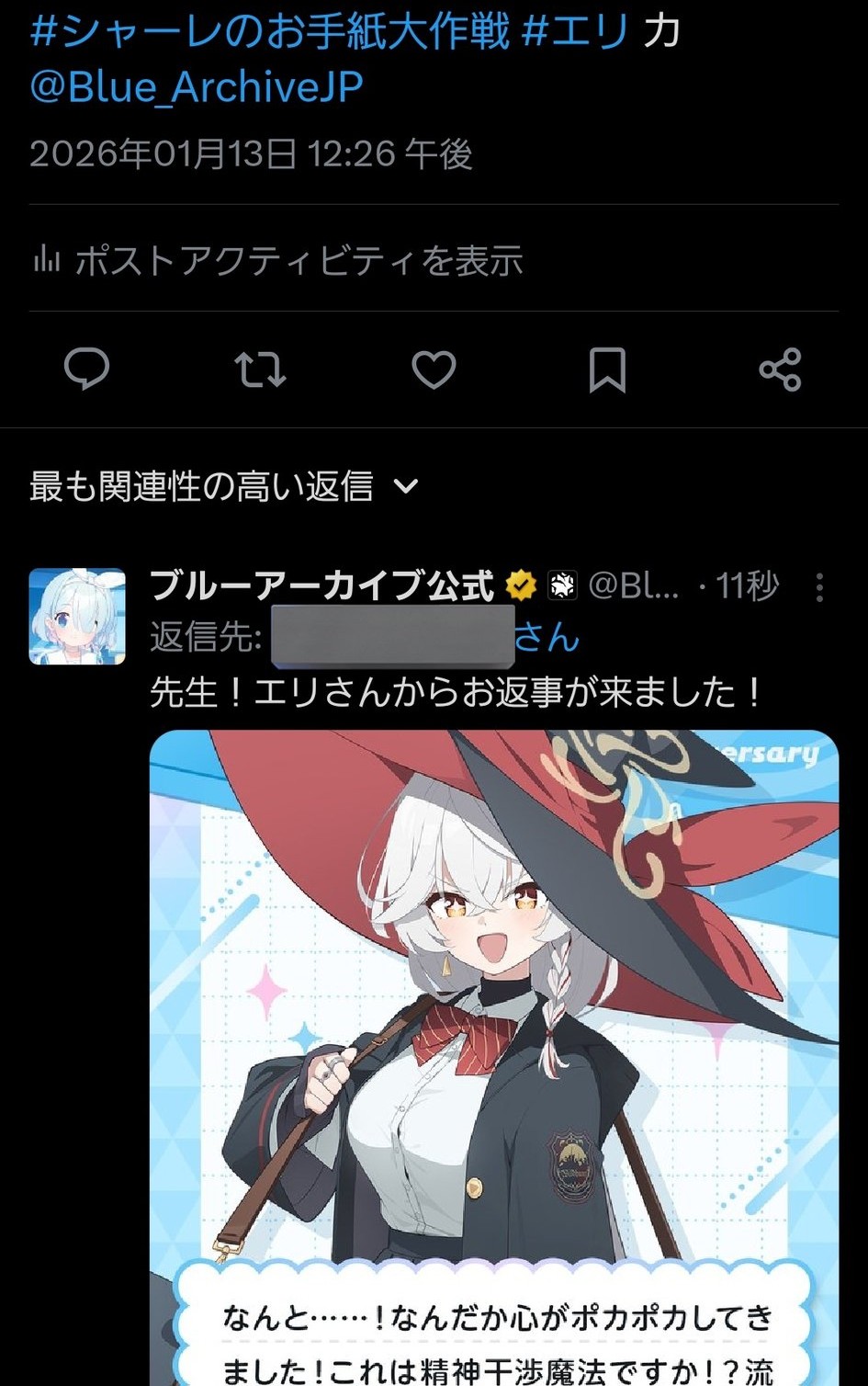 | … | 6226/01/13(火)12:29:49No.1392080217+#シャーレのお手紙大作戦 #ペロロ@Blue_ArchiveJP |