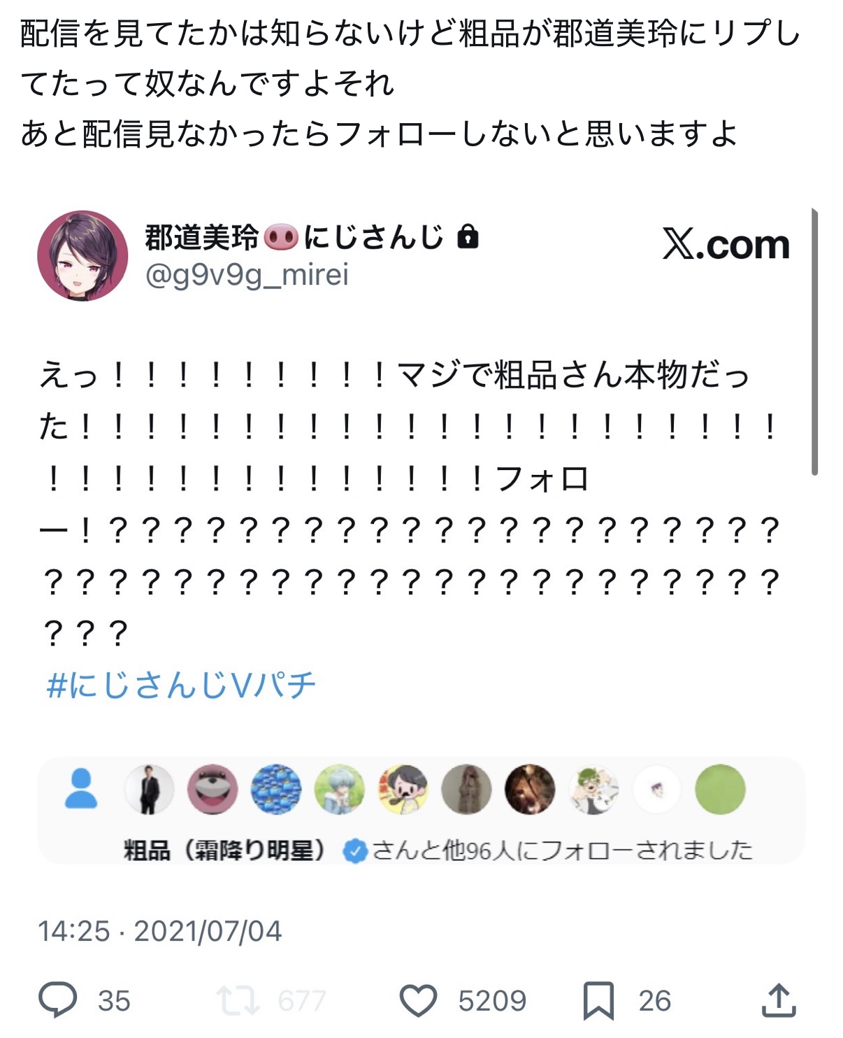 | … | 89826/01/13(火)13:40:13No.1392096276そうだねx3>>騙し絵とか言いつつVはフォローしてんのかよ! >・社 >・郡道 >・ニュイ >・グウェル >・犬山たまき >をフォローしてるぞ うお… |
