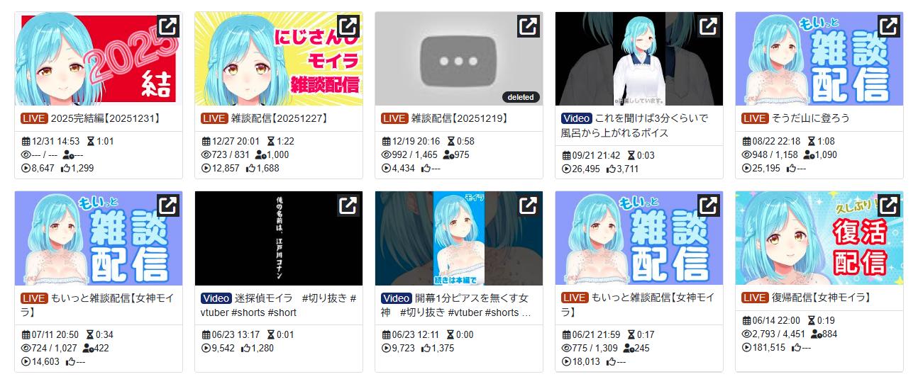 | … | 99526/01/13(火)14:16:42 ID:KI7xkk9gNo.1392103427そうだねx2>fu6160605.jpg >復帰配信したモイラ様の2025年の活動がこれだけだしな… これであらぬ憶測やサボり扱いされないんだからにじアンチもV嫌いおじさんもいないでしょ |