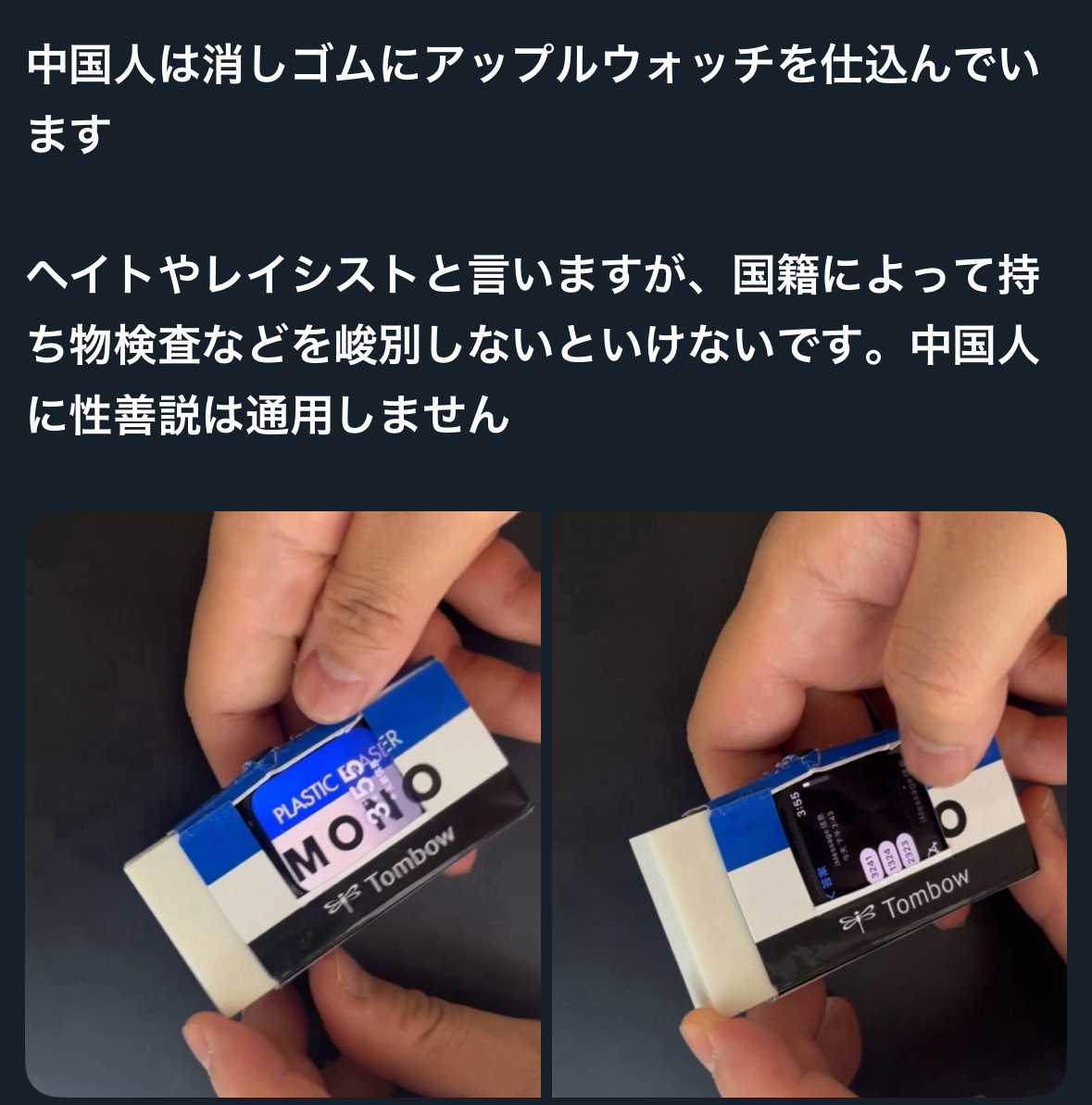 | … | 426/01/13(火)17:15:39No.1392137395そうだねx32カンニングで消しゴムに仕込むのは昔からだな |