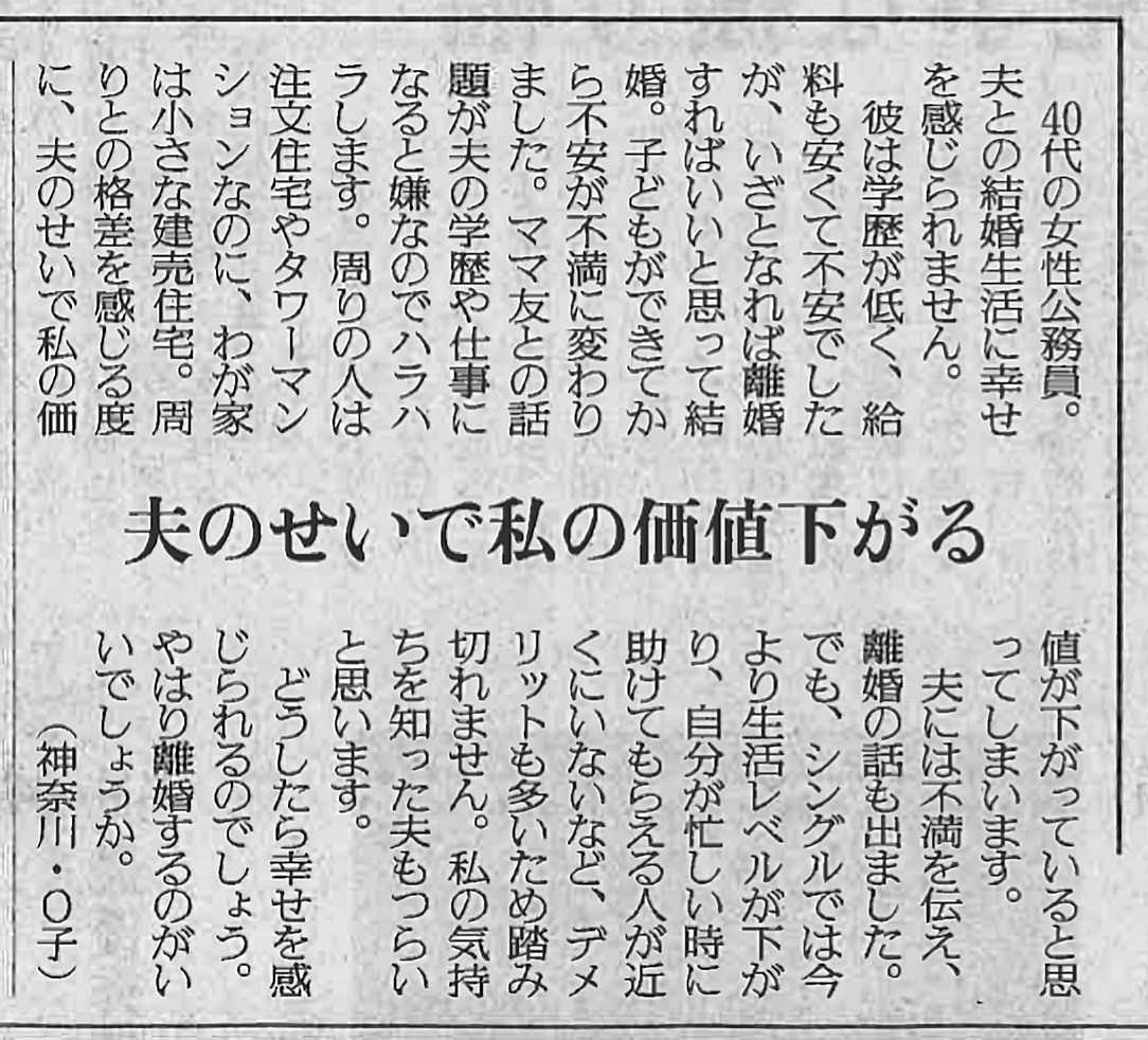 | … | 1126/01/13(火)18:14:32No.1392151976+読売新聞の人生案内だ… |