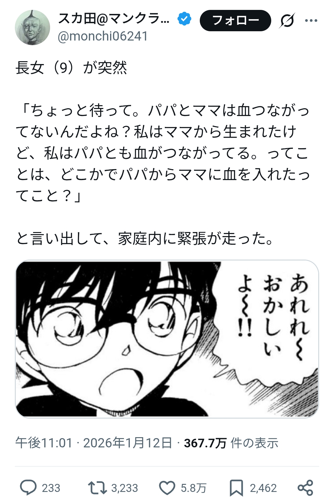 | … | 1426/01/13(火)20:55:18No.1392209722そうだねx58>俺の兄と俺の姉なのになんで?ってなったの思い出した |