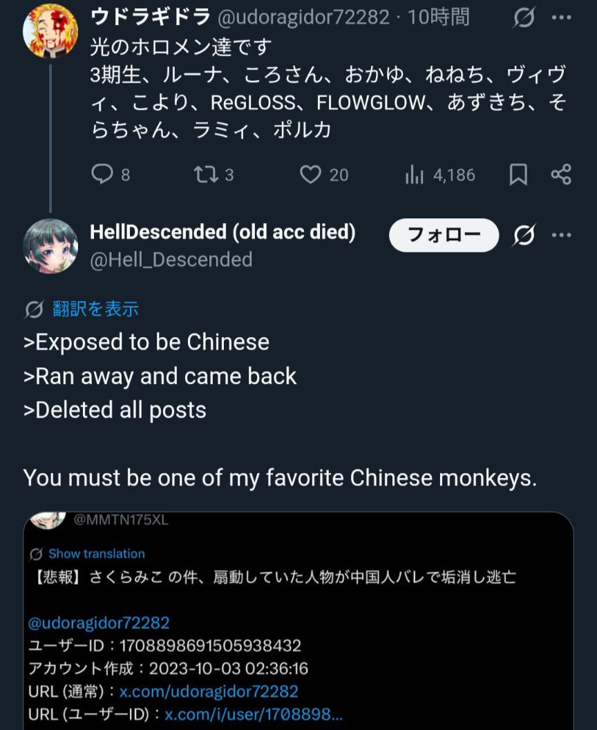 | … | 40926/01/13(火)23:33:02No.1392269393+にじ公式の注意喚起無視してる暴徒に対してイカンでしょって言ってたら |