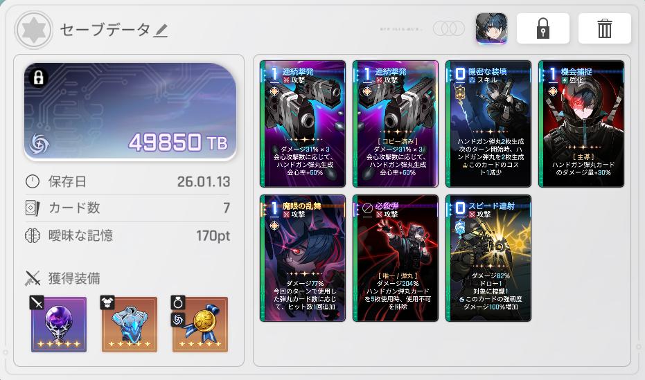 | … | 3026/01/13(火)22:53:20 ID:lmEvQ01QNo.1392255676+今回は排除圧縮に向いたイベカオスだったけど次は複製向きとかコスト緩和された後に一般カード重視とかも欲しいね |