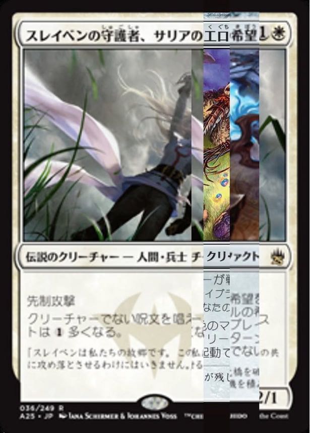 | … | 526/01/14(水)13:48:28No.1392386117+今回のプロモカードのアートでは、イニストラードにおいて信仰の対象であった天使や教会が堕ち、エルドラージの脅威が迫った大患期を描いています。 |