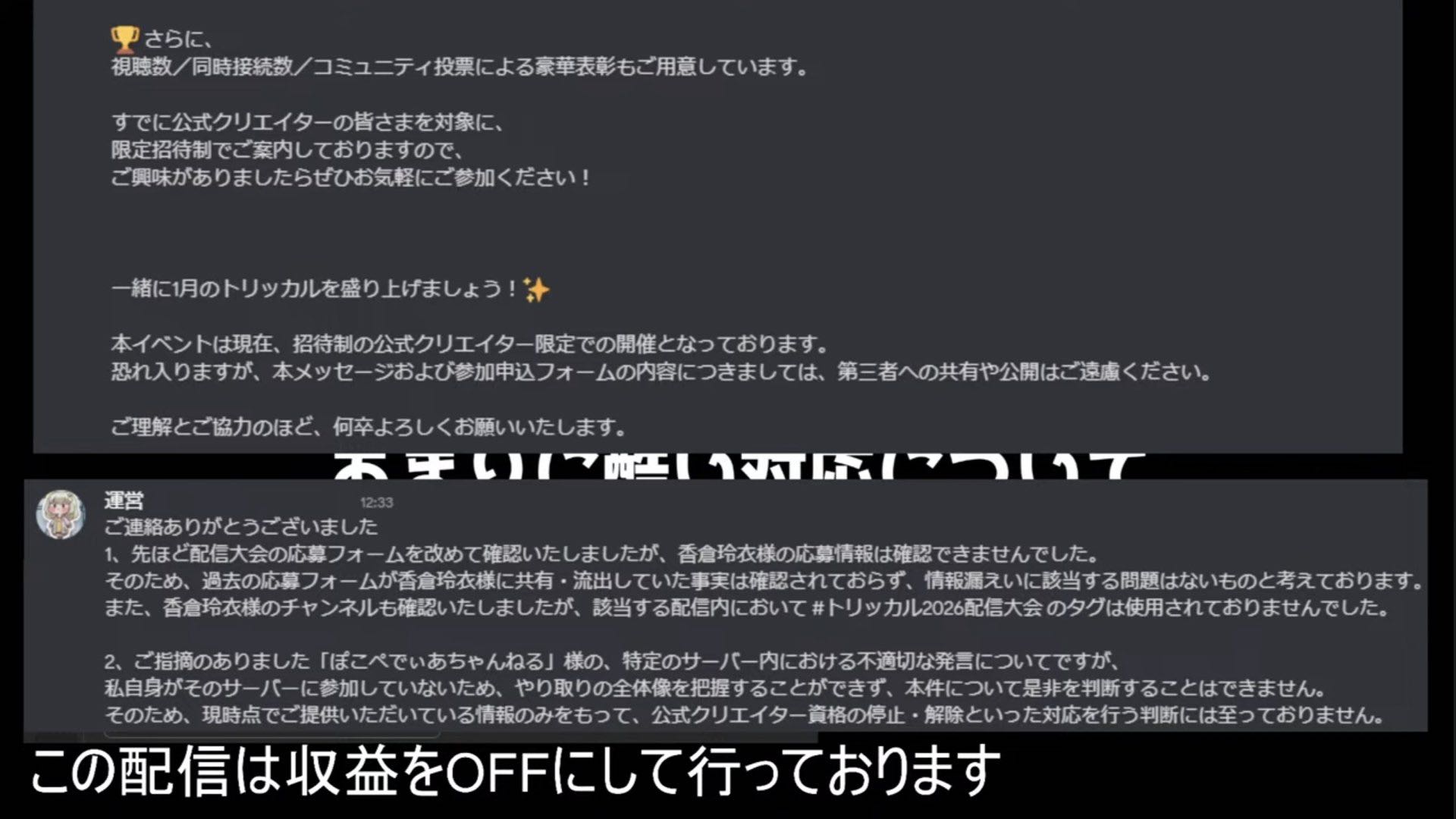 | … | 41126/01/14(水)18:14:46No.1392439168+公認ってあくまで運営にこれやりたいってことに対して許可出してるだけなんだよね |