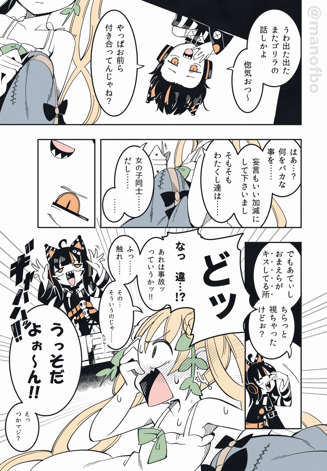 | … | 10026/01/14(水)19:52:44No.1392469969+ココちゃんがお嬢あのゴリラとえらい距離近いよな〜付き合ってんのー?って言ってハンナさんがめちゃくちゃ慌てるのは本編だったか二次創作だったか分からなくなった |