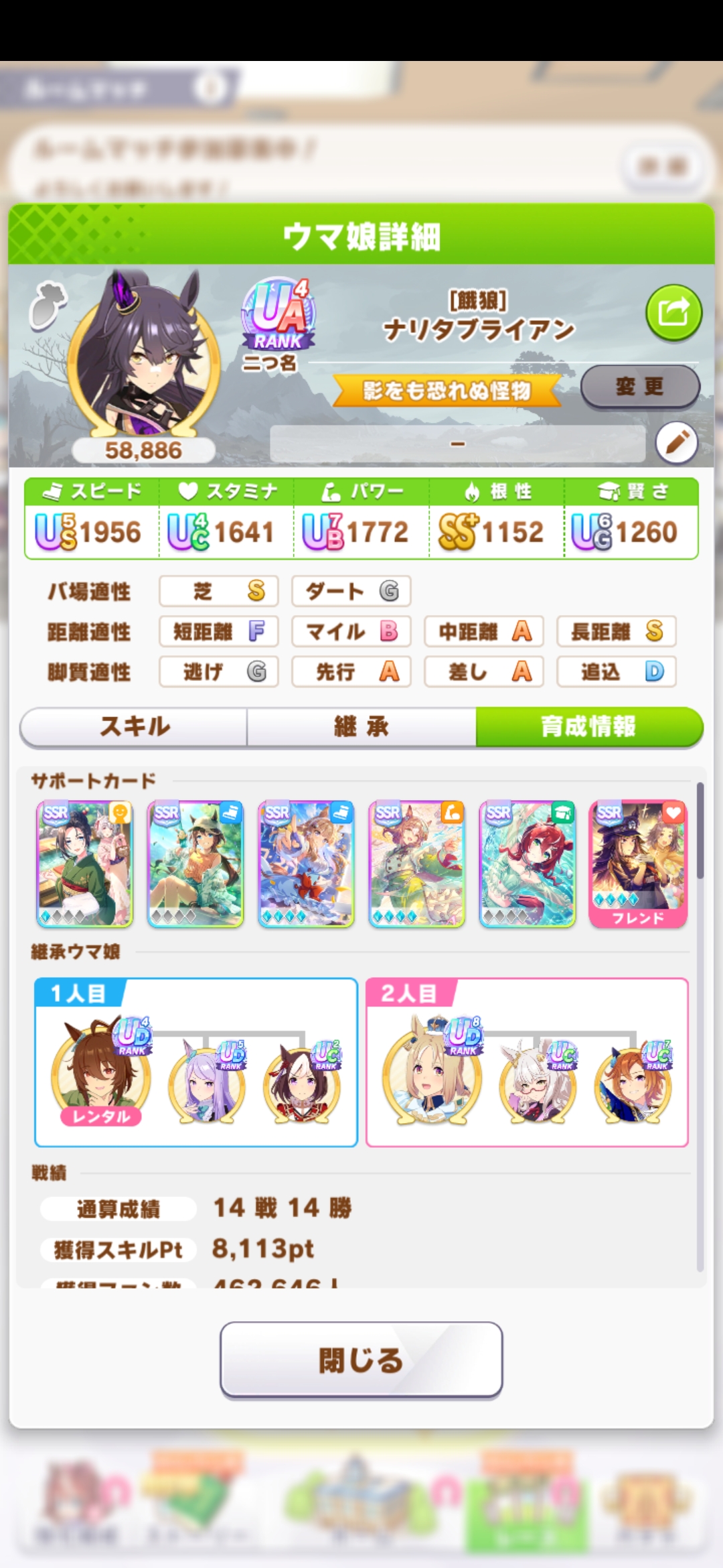 | … | 2226/01/14(水)20:20:03 ID:Ctc6SQ8ENo.1392480408+>因子周回して思ったんですがいつからか目標レースの時連続出走の文句言わなくなりましたね |