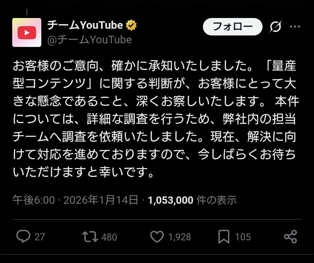 | … | 626/01/14(水)22:51:51No.1392535839そうだねx26昔っからだけど正規のルートでの異議申し立てには雑な対応してメで騒がれるとすぐ反応するの本当にクソだなって思う |