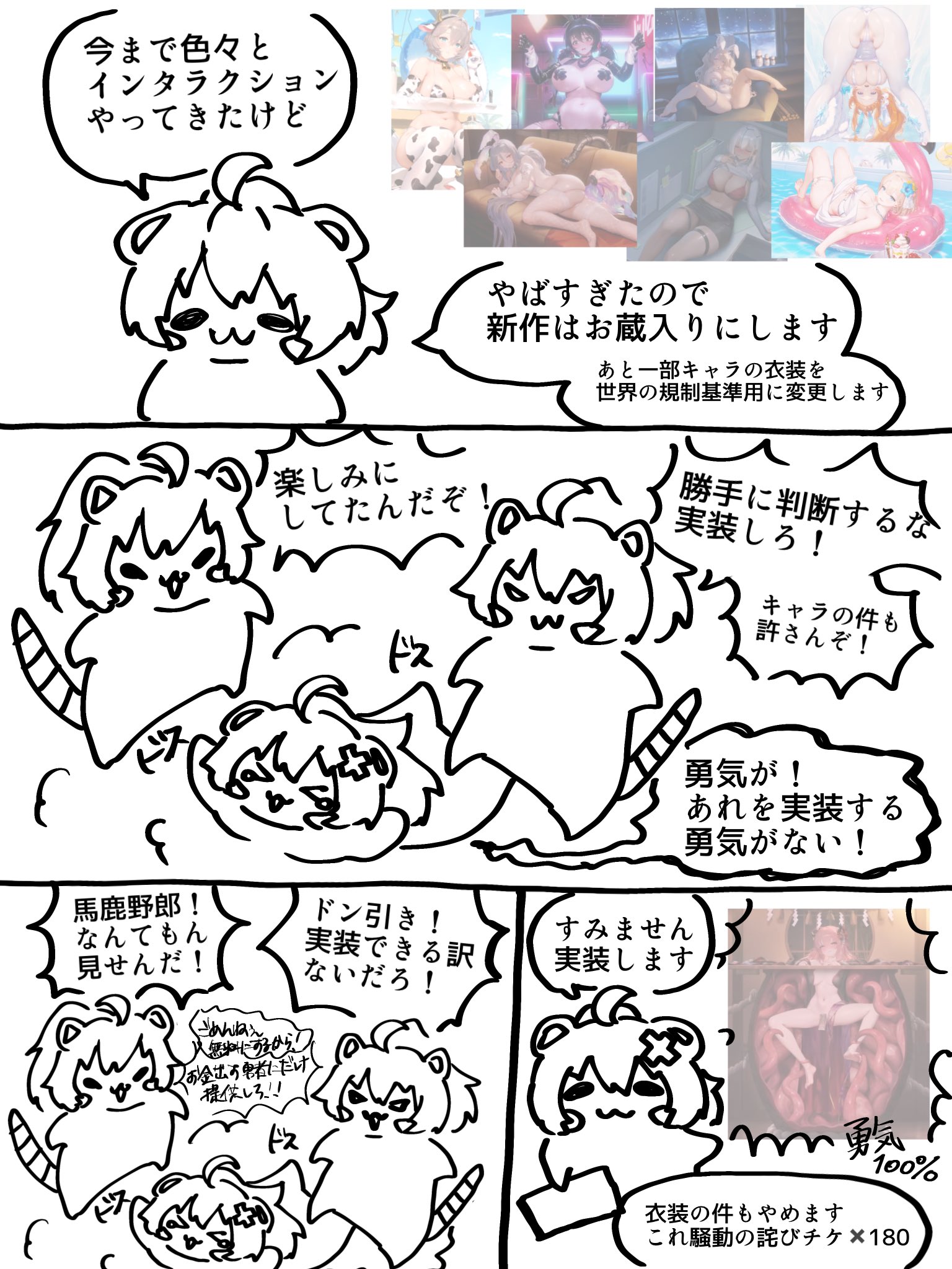 | … | 5126/01/15(木)07:25:17No.1392597311+ポリコレだのエロ規制だのゴミだよ!ゴミ!人間は欲望に忠実になれ |
