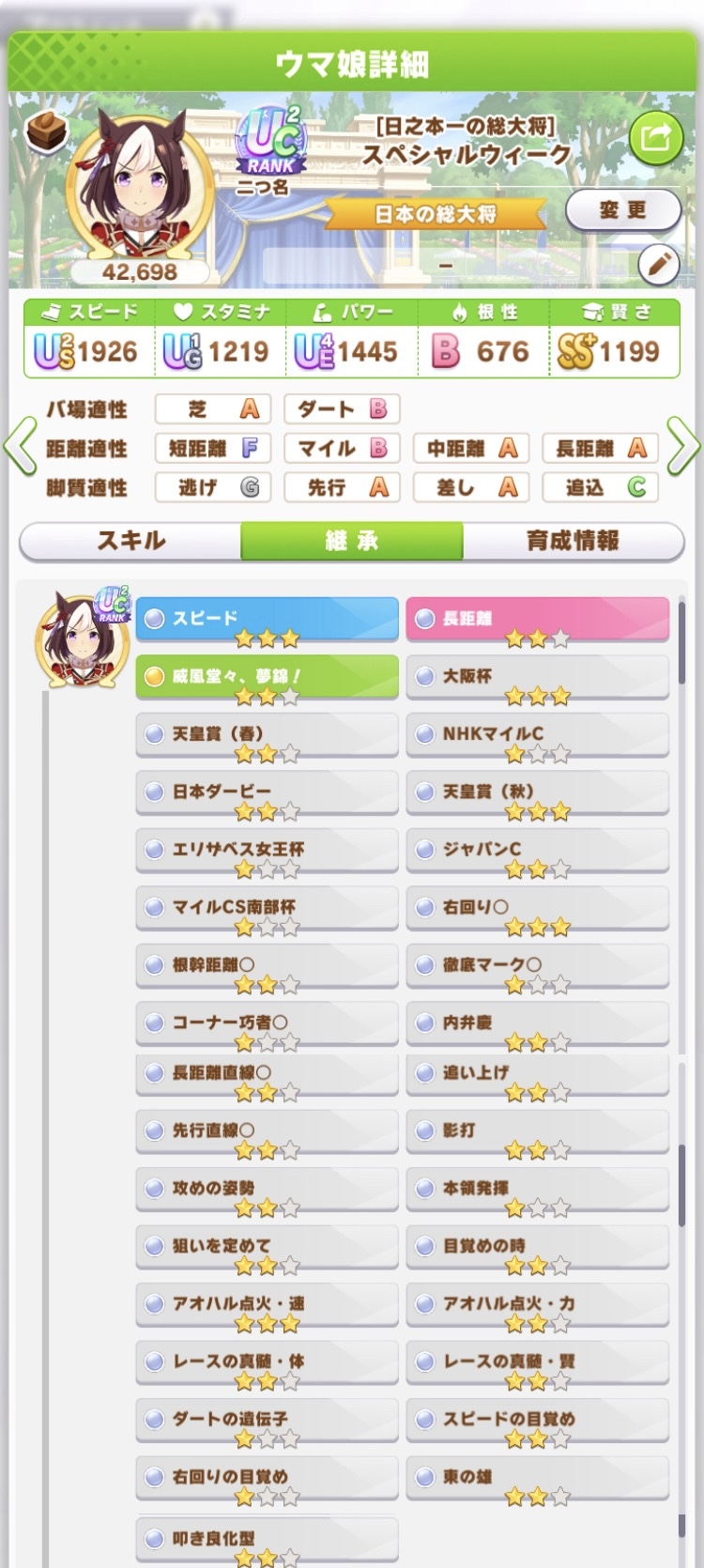 | … | 22026/01/15(木)12:01:44 ID:1wvGE0G2No.1392636460+SP2付いてるサポカ持ってるか否かでSPにだいぶ差が付きますよね |