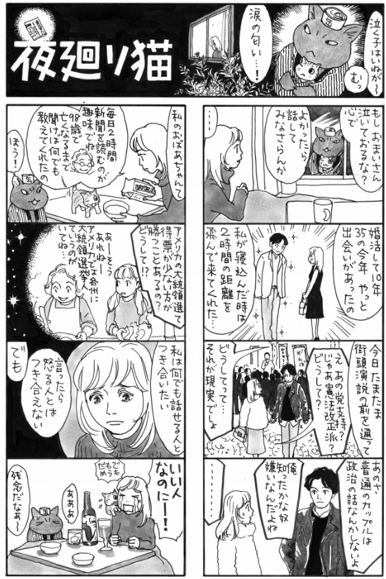 | … | 80326/01/15(木)12:43:43No.1392648588+政治思想が衝突したくらいで別れるならそもそも籍入れないだろ |