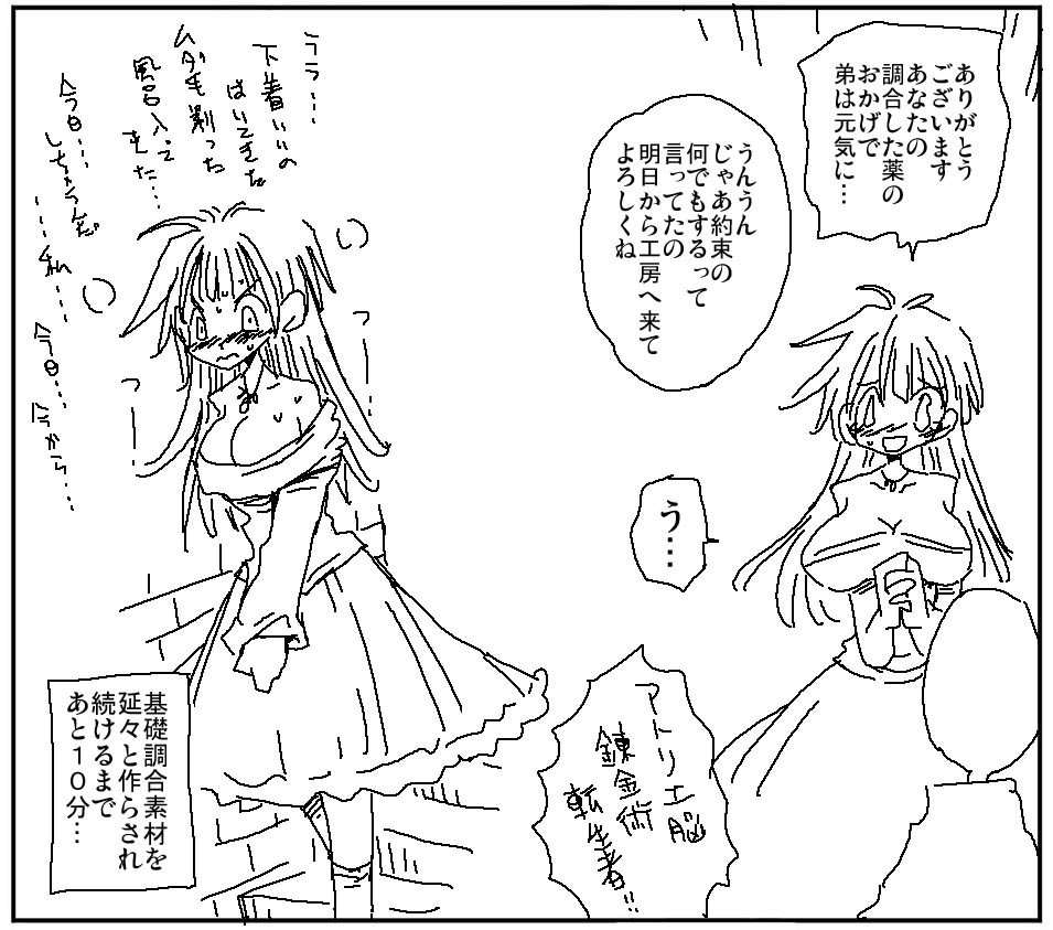 | … | 4526/01/15(木)19:12:51No.1392735335そうだねx10>この時代のアトリエにセックスの機能はついてないからな… |