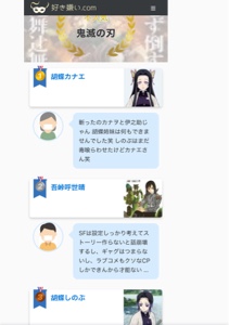 | … | 7326/01/15(木)21:12:38No.1392778439そうだねx1>甘露寺が炎とフラグ立ててたら絶対強烈なアンチついてたということはわかる |