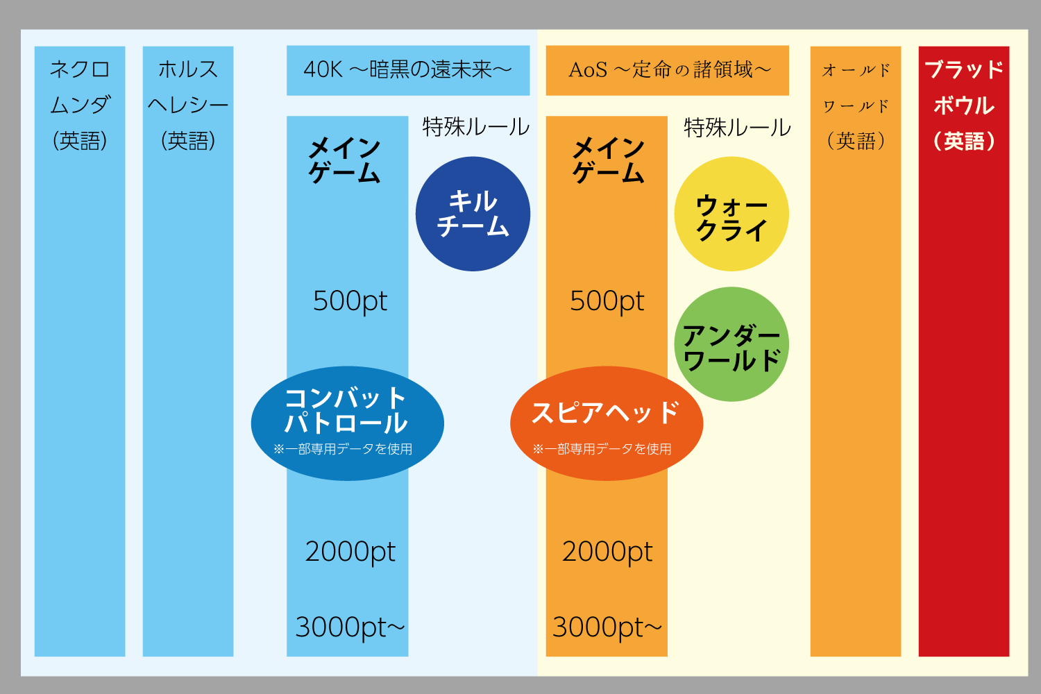 | … | 26426/01/16(金)11:45:07No.1392919198そうだねx2>キルチームと40kの中間みたいなルールがないのが良くないんかな |