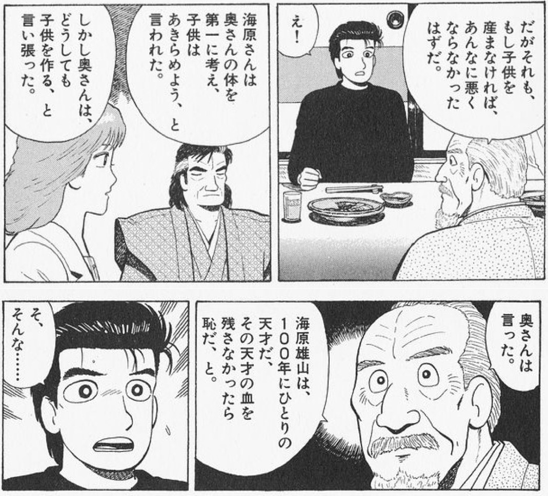 | … | 10126/01/16(金)12:53:49No.1392935407そうだねx3「雄山の血を残す」と「自分が雄山の世話をする(大成を見届けて支える)」を両立させる為に |