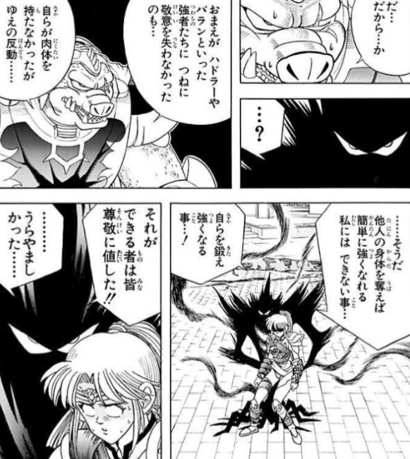 ケケケーッ!何の努力もしないでお手軽に強くなるのは最高の快感だぜぇ〜!とか言うタイプの敵じゃん普通…